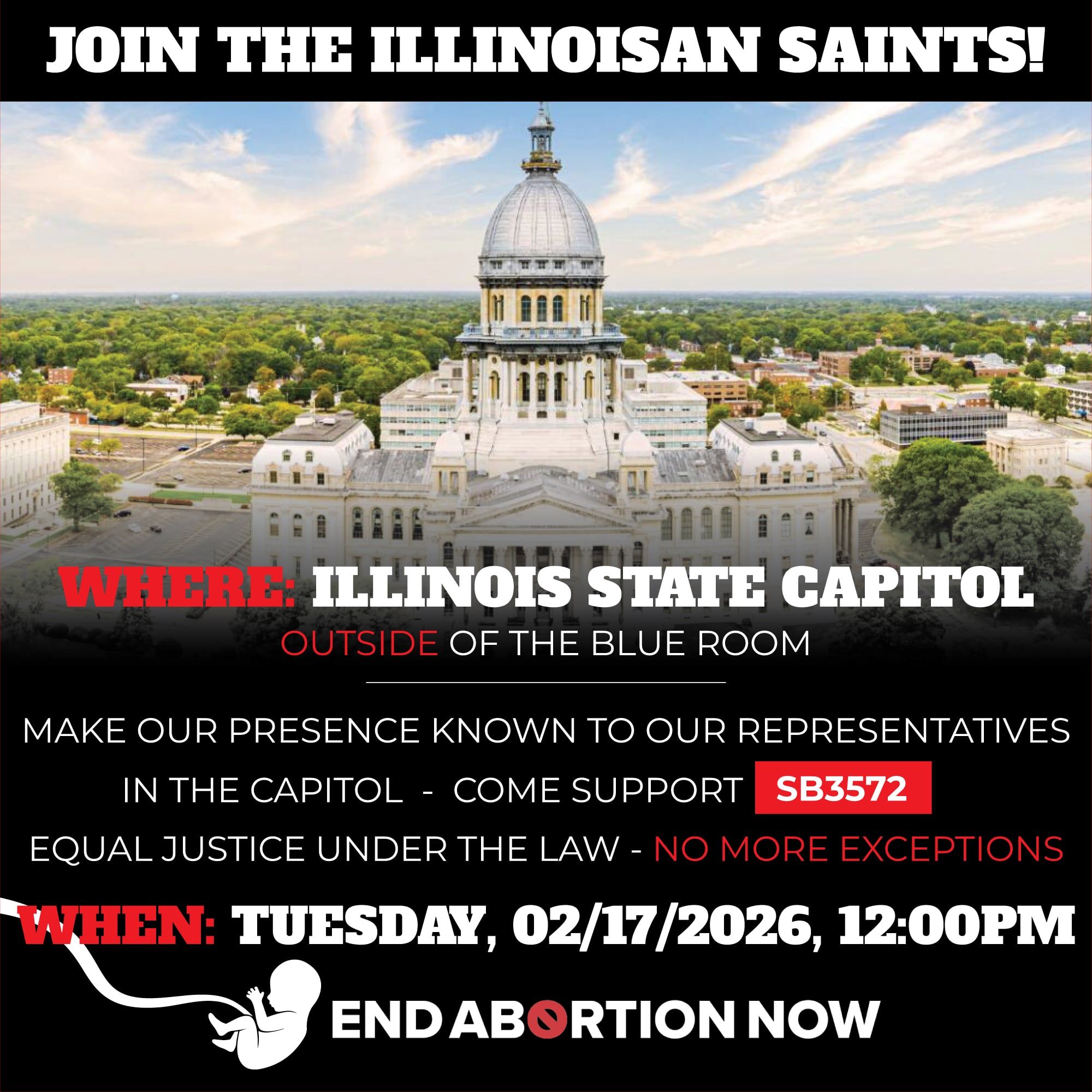 “Hello, my name is [Your Name], and I am a constituent living in [Your City/Zip Code]. I am calling today to strongly urge Senator [Senator’s Last Name] to support and co-sponsor Senate Bill 3572, the Abolish Abortion Illinois Act. I believe that our state should recognize the inherent right to life for all human beings from the moment of fertilization, and I want my senator to know that this issue is a high priority for me. Thank you for making sure the senator receives my message.”
